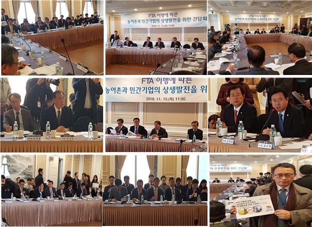 <정치부=정완태 기자> 국회 농림축산식품해양수산위원회(위원장 황주홍 의원)는 15일(목) 11시 국회본관 3층식당(별실1)에서 ‘FTA 이행에 따른 농어촌과 민간기업의 상생발전을 위한 간담회가 농해수위원장 및 위원, 농식품부 및 해양수산부장관, 15그룹의 임원들이 참석 개최됐다.
