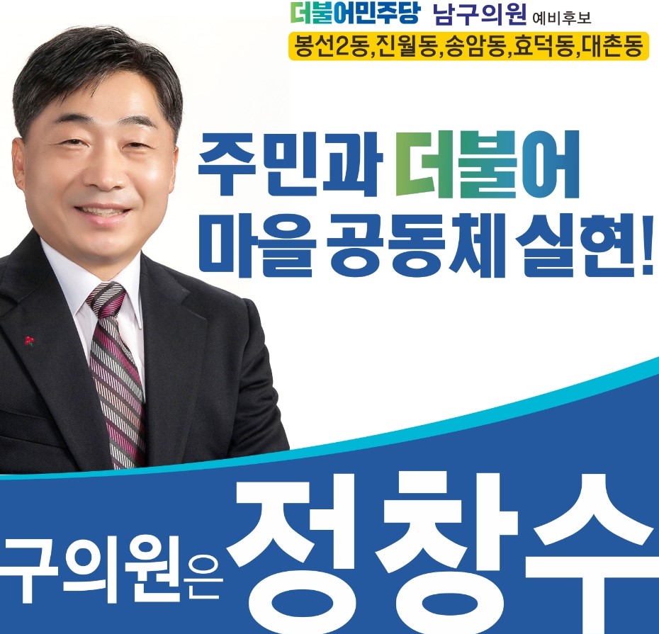 (내외매일뉴스/내외매일신문=방명석 기자)  정창수 더불어민주당 광주 동남갑 부위원장은 이번 6.1 지방선거를 통해 지역민들의 고충과 지역의 발전을 위해 남모르게 봉사했던 노력을 제도권 안에서 하나씩 실천해야 할 필요성을 느껴 민선 8기 광주광역시 남구 기초의원 예비후보에 출사표를 던졌다.