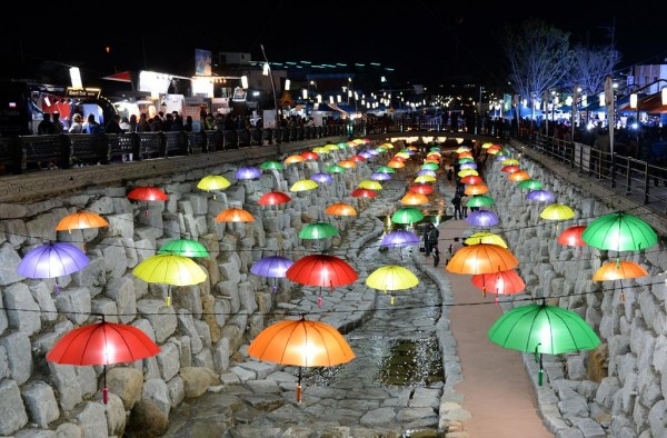 창녕천 일원에 우산등으로 화려하게 장식된 모습