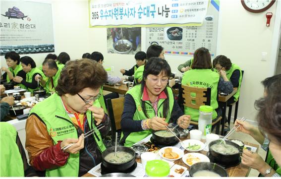 관악구, 좋은이웃가게에서 우수자원봉사자에게 순댓국 대접해