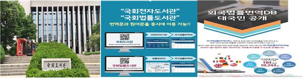 <정치부=정완태 기자> 국회도서관(관장 허용범)은 2019년 1월 1일부터 「외국법률번역DB」를 국회전자도서관과 국회법률도서관을 통하여 국민 누구나 자유롭게 이용할 수 있도록 전면 공개한다고 하였다.