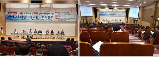 <내외매일뉴스=정완태 과학전문기자> 국회 교육문화체육관광위원회(유성엽·안민석·이종배·이동섭 의원) 공동주최, 국제언어교육연구원·실용영어추진운동본부 공동주관으로 ‘말 못하는 앵무새 영어교육 이제그만 ! 영어교육내실화’를 위한 국회토론회가 국회의원회관 대회의실에서 17일, 교육부·한국영어교육학회·한국외국어교육학회·영어다독학회·영어교과교육학회·글로벌문화교류진흥원 후원으로 열렸다.