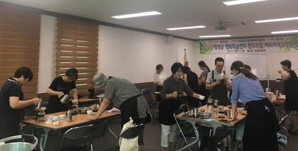그 중 핸드드립커피 자격과정반은 자격증 취득을 목표하고 있어 미처 신청하지 못한 군민들은 접수 마감 후에도 추가 신청과 연장 운영이 가능한지 문의가 잇따르면서 엄청난 호응을 얻고있다.