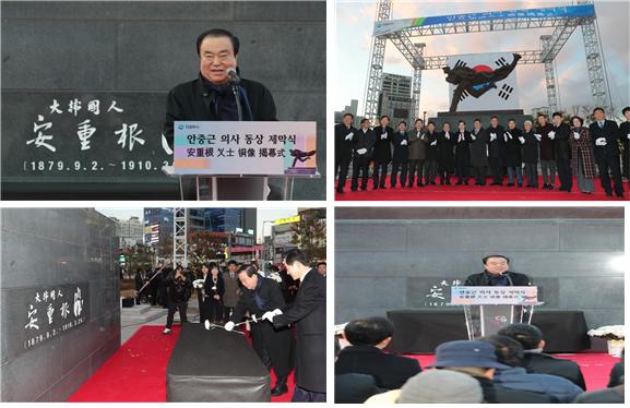 이날 안중근 의사 동상 제막식은 의정부시, 중국 차하얼학회, 한국국제문화교류원이 주관하였으며, 김진표 의원, 홍문종 의원, 박정 의원, 안병용 시장, 추궈홍 주한 중국대사, 임창열 킨텍스 대표이사(전 경기도지사), 이계성 국회 대변인 등 관계자들이 참석했다.