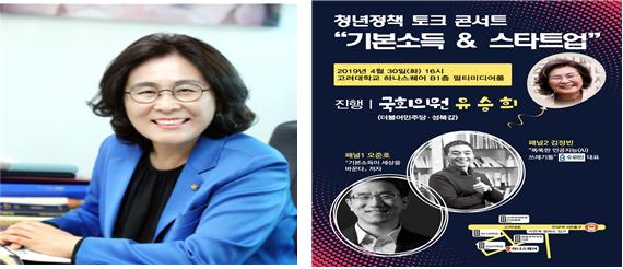 <정치부=정완태 기자>더불어민주당 유승희 국회의원(성북갑ㆍ기획재정위원회ㆍ3선)은 오는 30일(화) 오후 4시 고려대학교 하나스퀘어(B1) 멀티미디어룸에서 청년정책 토크콘서트 ‘기본소득&스타트업’을 개최한다.