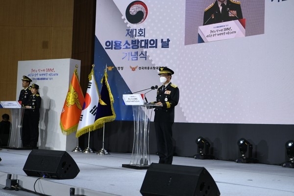 (내외매일뉴스/내외매일신문=송정근 기자) 이흥교 소방청장이 지난 29일 킨텍스에서 열린 ‘제1회 의용소방대의 날 기념식’에 참석해 기념사를 하고 있다.
