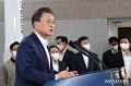 문재인 대통령이 21일 오후 한국형 발사체 '누리호(KSLV-2)'의 발사 참관을 마치고 전남 고흥 나로우주센터 발사통제동에서 대국민 메시지를 발표하고 있다.(사진=뉴시스) “위성 궤도 안착 미완의 과제…발사체 고도 700km 보낸 것만도 대단” 누리호 발사 참관 후 대국민 메시지…“내…