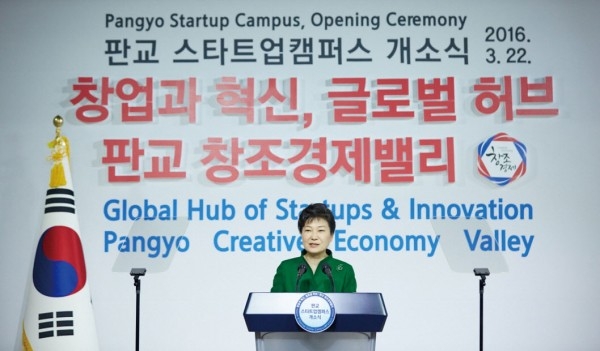 박 대통령은 이날 오전 경기 성남시 판교 스타트업 캠퍼스 개소식에 참석해 “국경을 넘어 우리 젊은이들이 세계로 나가고, 전 세계의 인재들이 찾아와서 마음껏 창업의 꿈을 구현하는 ‘창조경제의 요람’이 이곳에서 펼쳐지기를 기대한다”며 이같이 밝혔다.