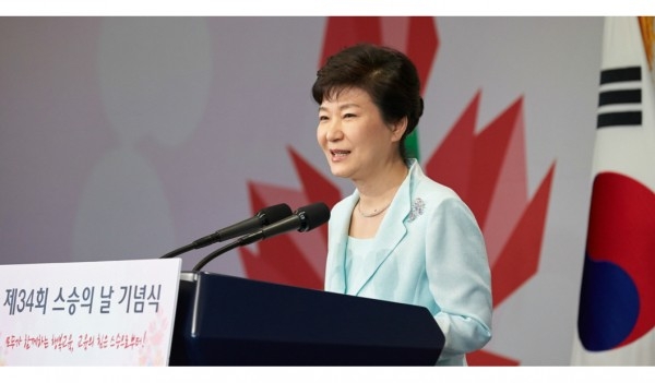 박 대통령은 축사를 통해 “정부는 선생님들이 존경받는 사회 분위기를 만들고 선생님들께서 자긍심을 갖고 자기계발과 교육에 전념할 수 있도록 각별한 관심과 노력을 기울여 나갈 것”이라고 밝혔다.