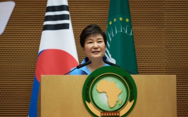 박근혜 대통령이 27일 오전(현지시각) 에티오피아 아디스아바바 아프리카연합(AU)본부 넬슨 만델라 홀에서 특별연설을 하고 있다.(사진=청와대)